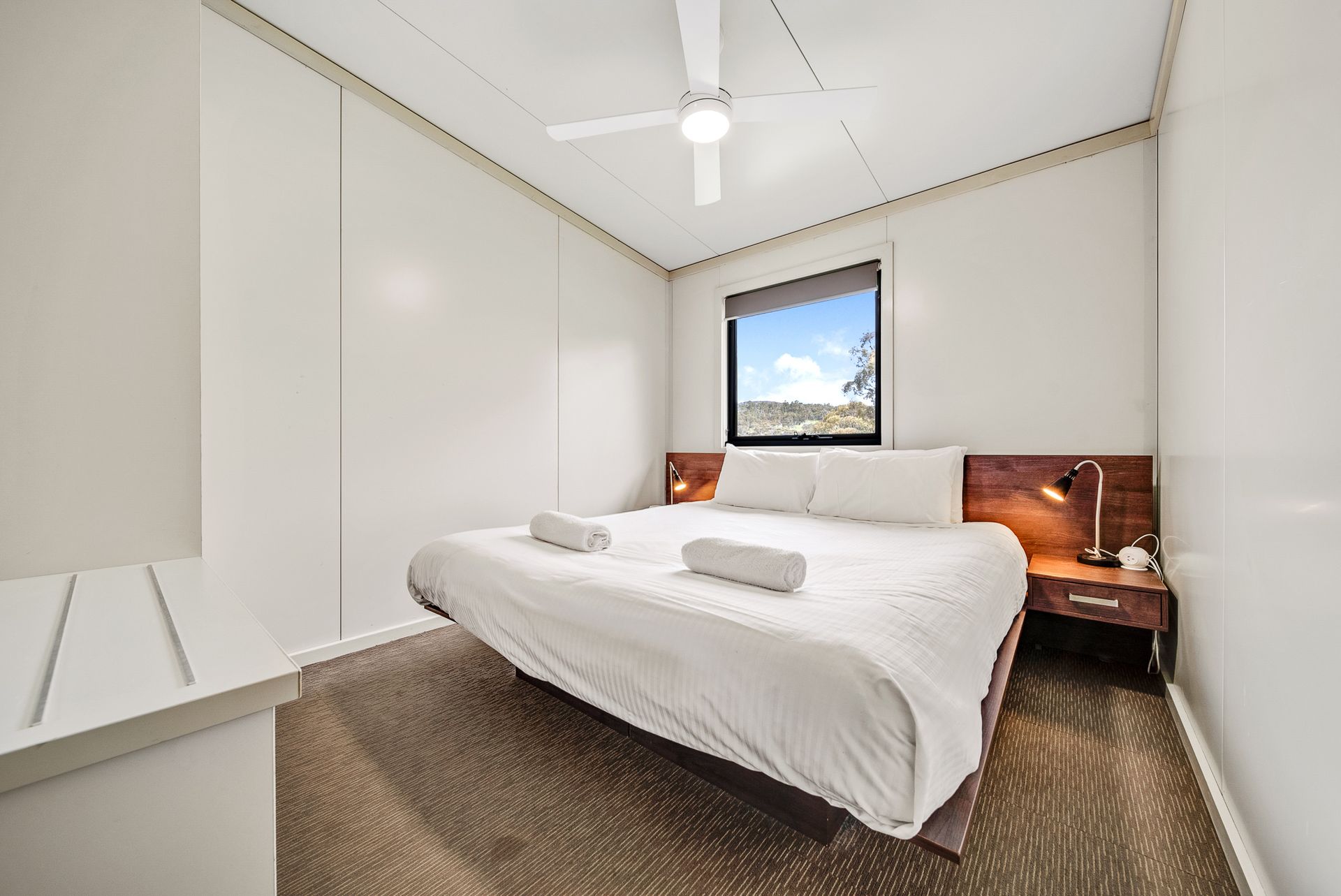 Each self-contained chalet is a perfect fit for families of 4 or 2 couples. Ecocrackenback 9 bedding configuration is 1 king bed & 2 singles beds. There are 18 chalets on offer at Ecocrackenback so please check multiple chalets for your chosen dates.