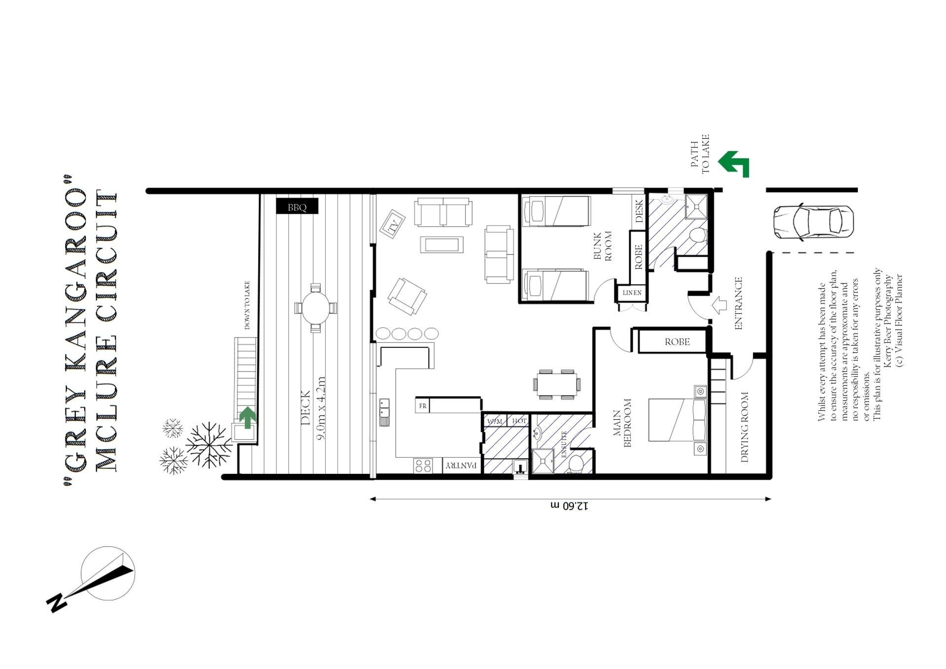 Grey Kangaroo is centrally located and comprises of two bedrooms, two bathrooms, a spacious lounge/dining area, a fully equipped kitchen, internal laundry, Wi-Fi (connected to NBN), and off-street parking. The property also has a workroom that is perfect for ski/board storage and tuning during winter or a secure area for bikes, water skis, and kayaks during summer.