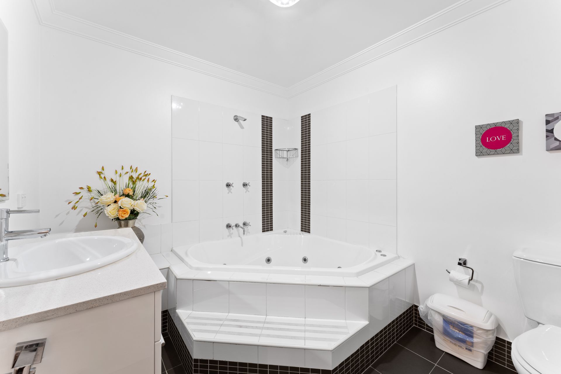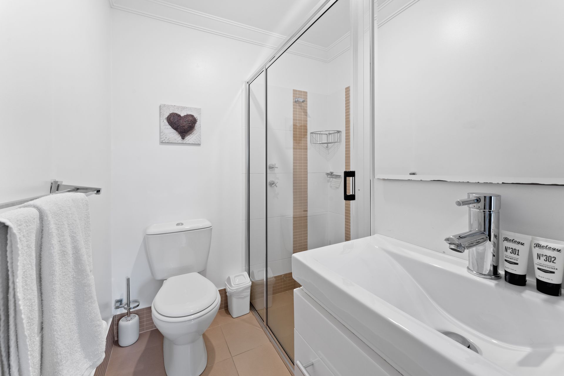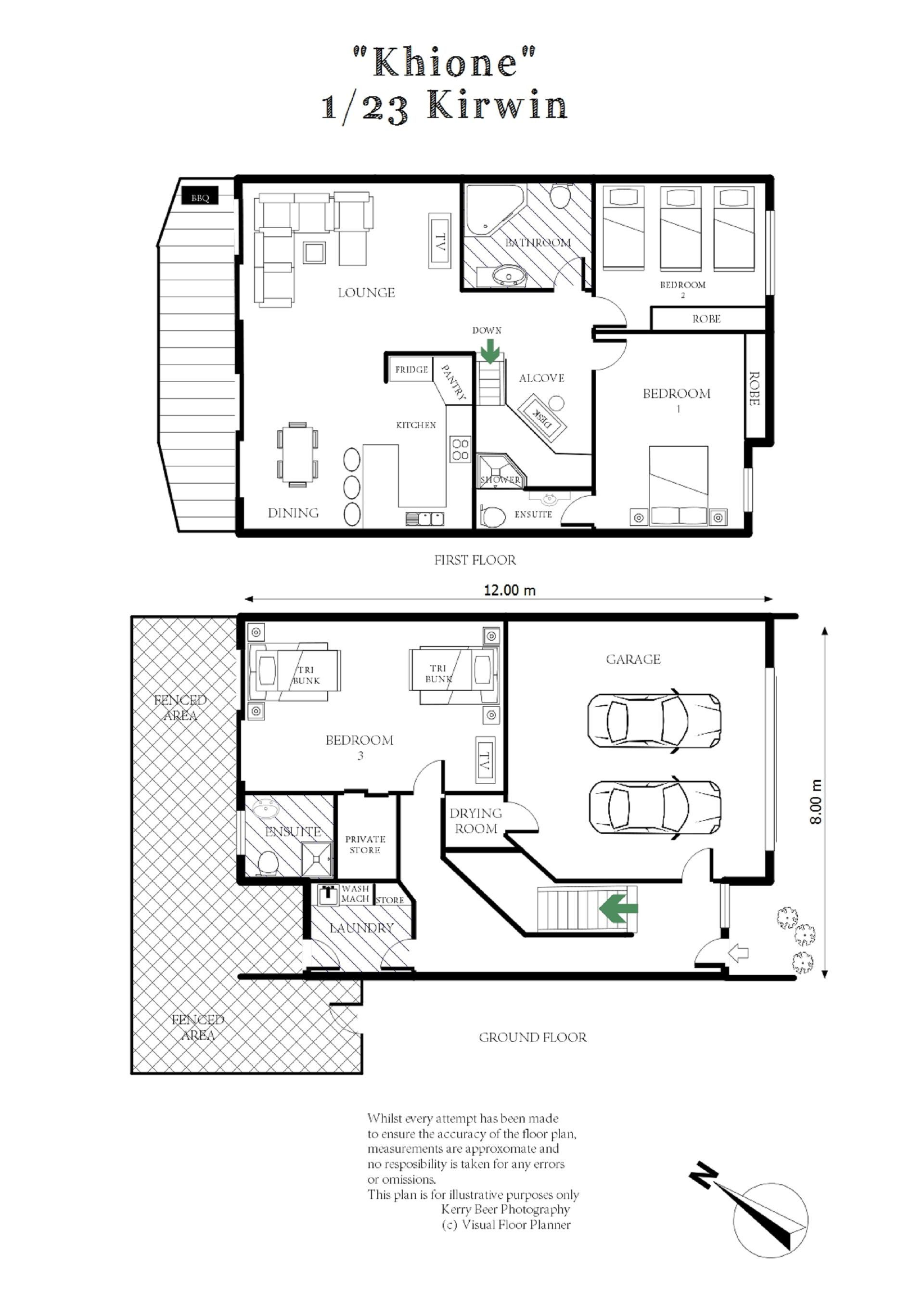 The laundry provides a washer and dryer, with an external door to the private courtyard and plenty of additional storage space. Khione 1 also has a double lock-up garage with remote, a drying room with hanging space, and internal access to the townhouse.