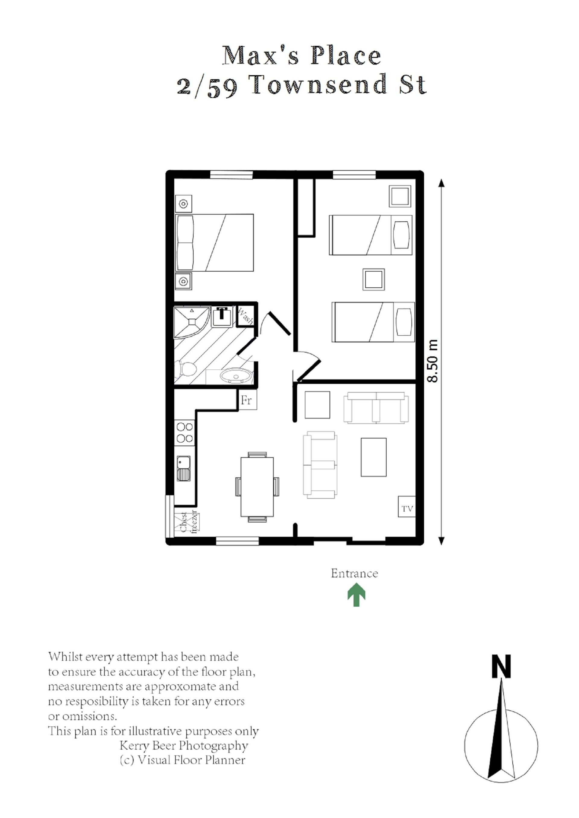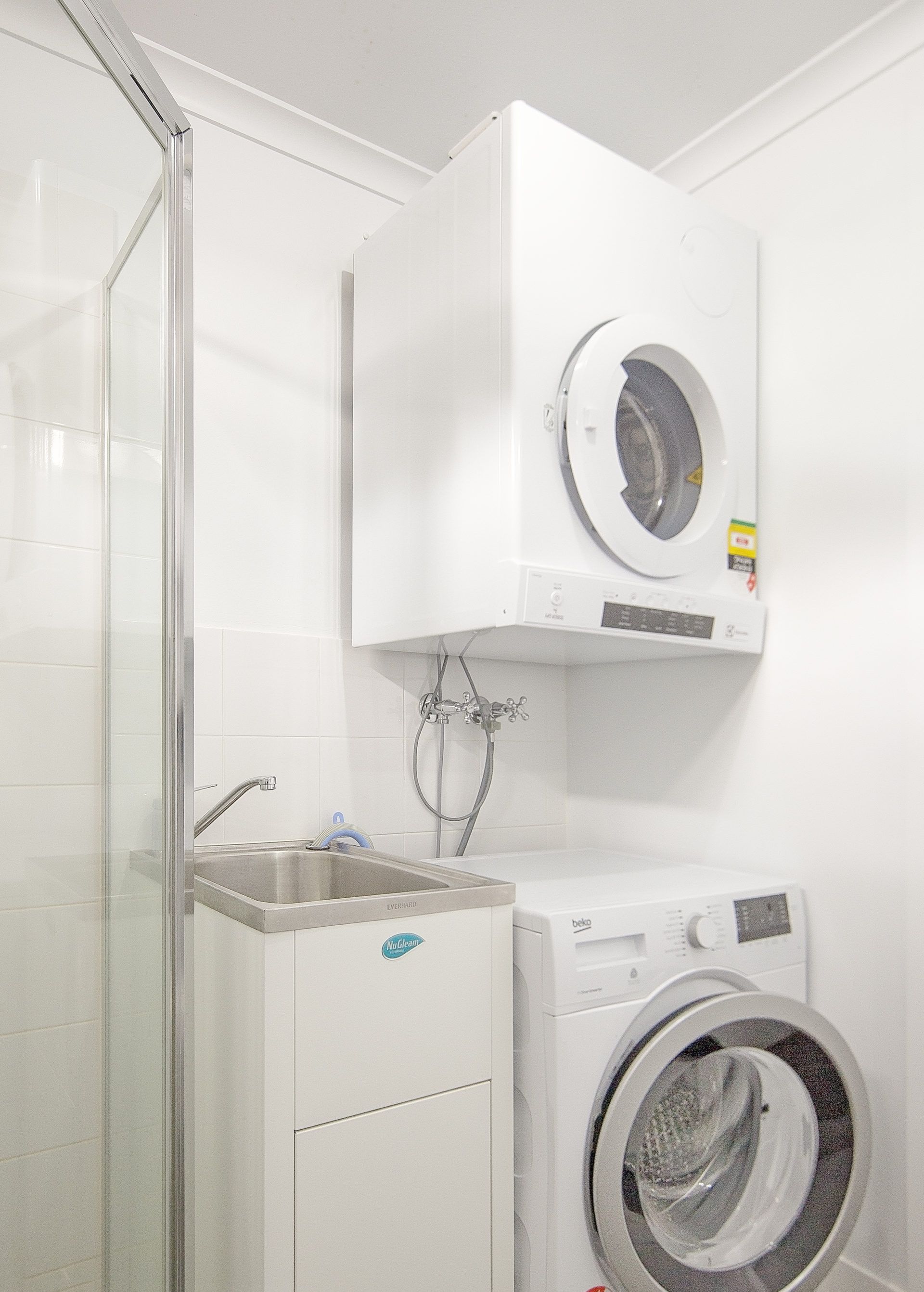 This cosy, two bedroom apartment has an open plan living/ dining/ kitchen area, modern bathroom, laundry facilities including washing machine and dryer, as well as one off-street parking space and free Wifi. The kitchen is fully equipped with stove/oven, microwave, fridge and chest freezer while the living area boasts air-conditioning.