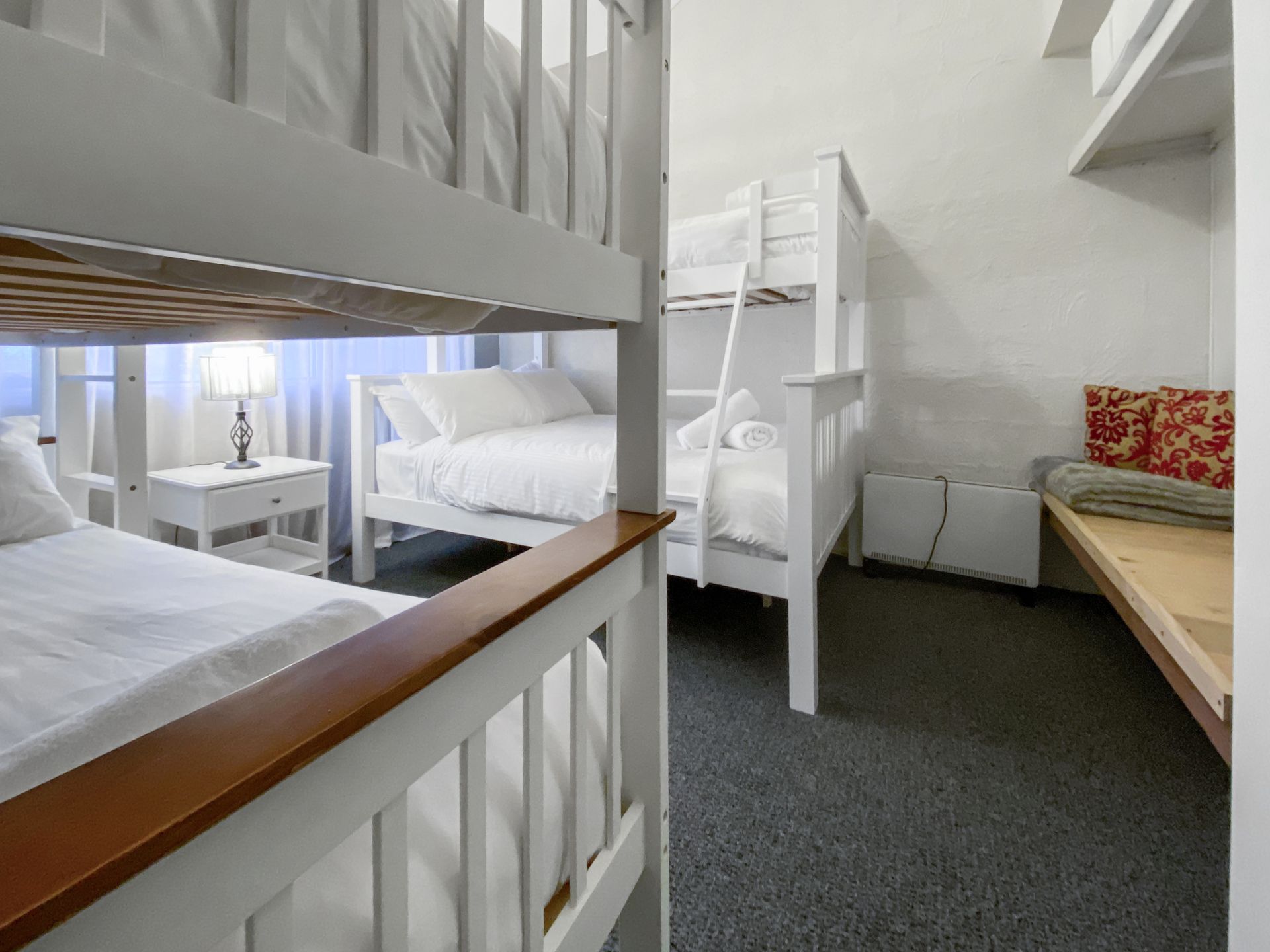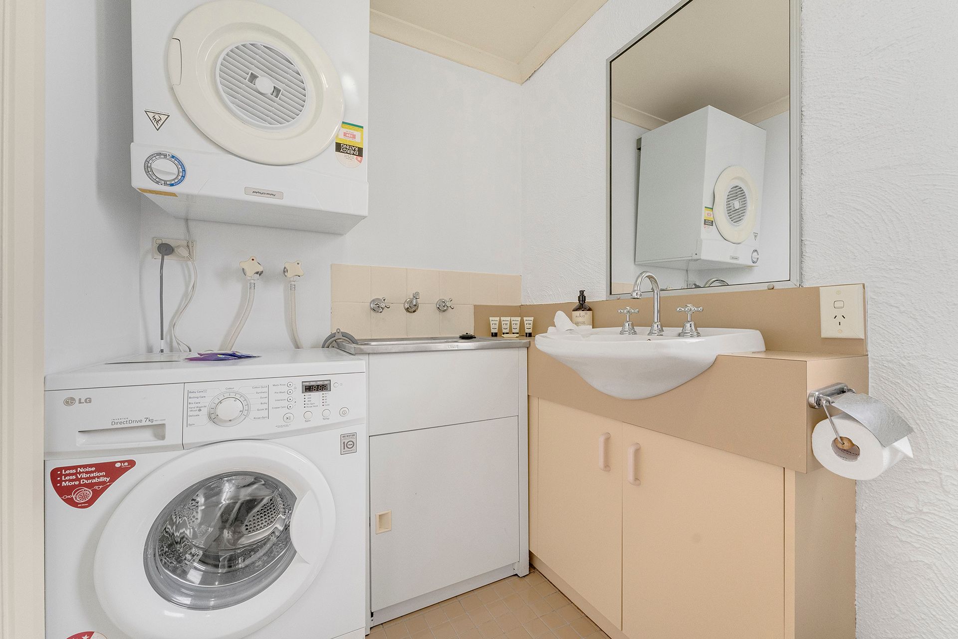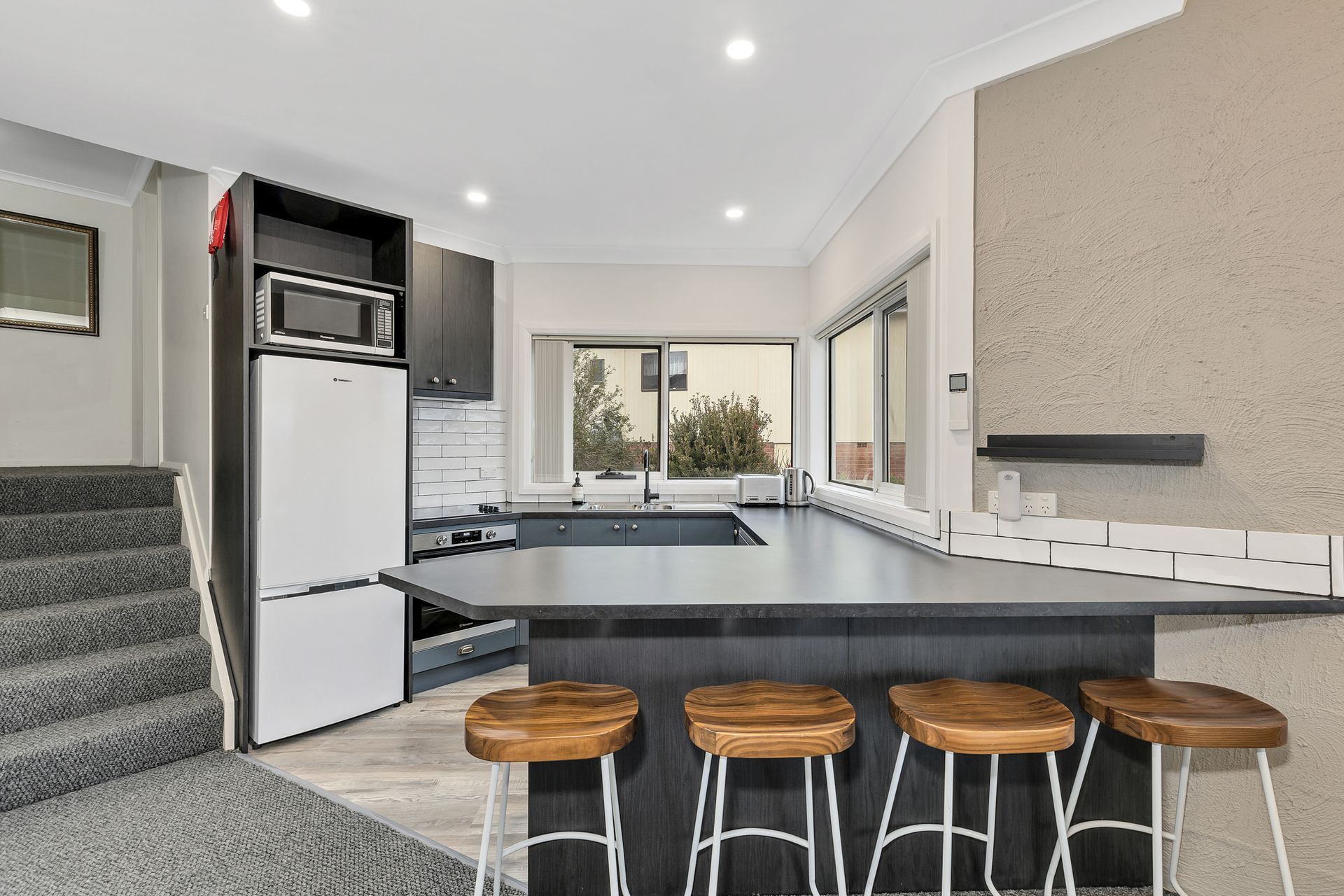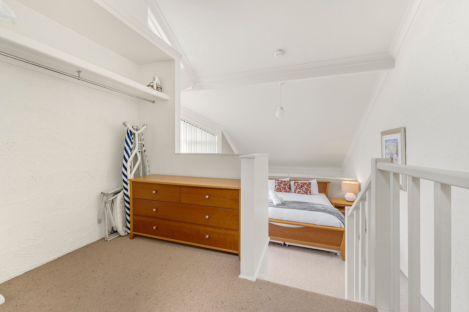 Upstairs on the second level, you'll discover a well-appointed combined bathroom and full laundry, adding ease and convenience to your stay. This level also includes a cosy bedroom with a bunk bed and tri-bunk, perfect for kids, a second couple or additional guests.